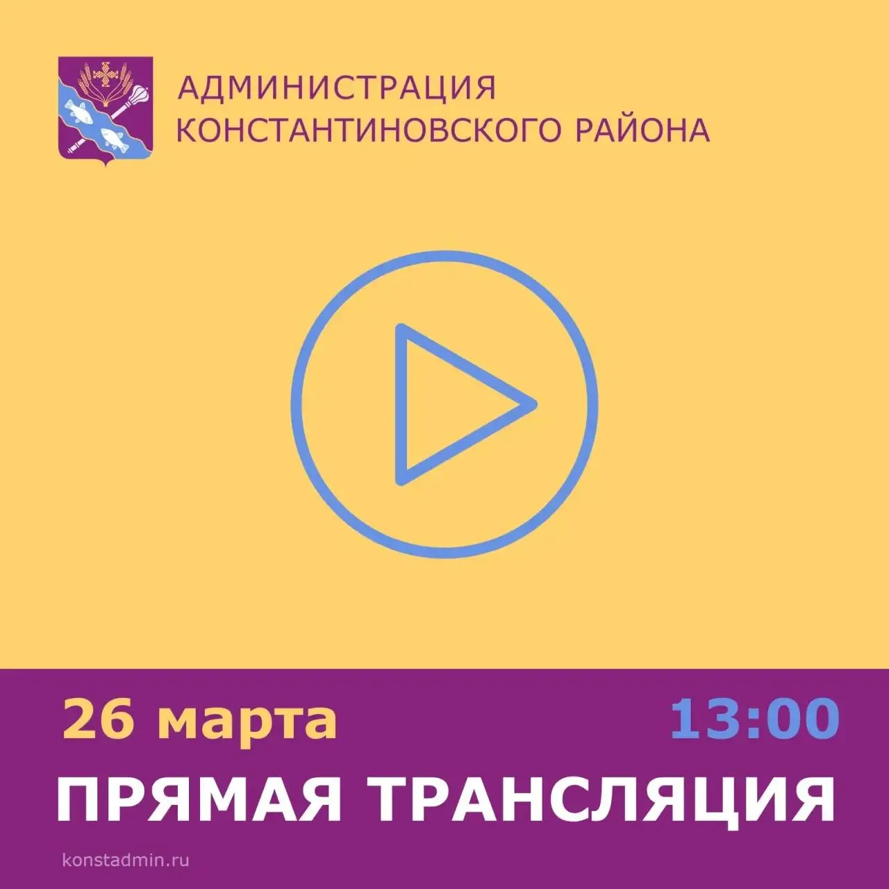 Уважаемые жители Константиновского района! 26 марта в 13.00 часов Виталий Дьячкин, глава Администрации Константиновского района, ответит на актуальные обращения жителей.