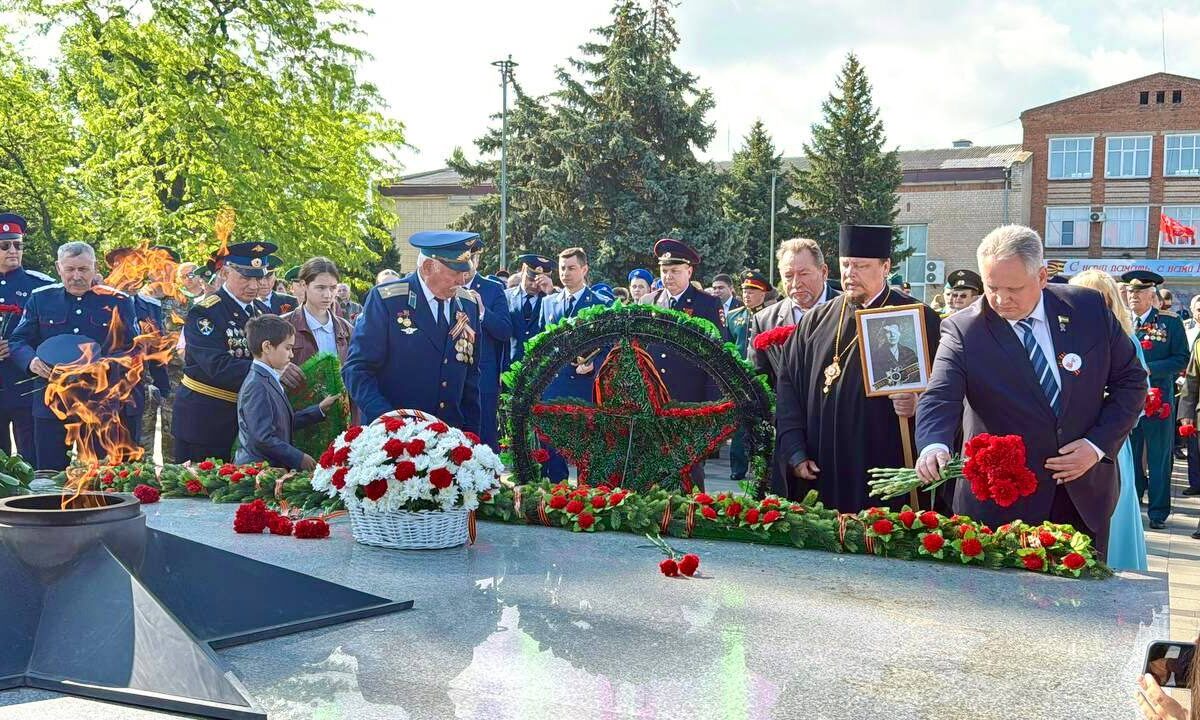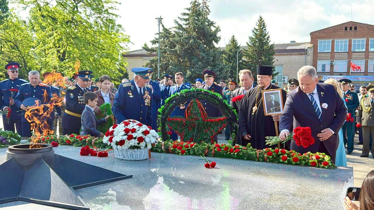 9 мая в городе Константиновске прошла торжественная церемония возложения цветов к Вечному огню на Мемориальной площади, посвящённая 80-летию Победы.
