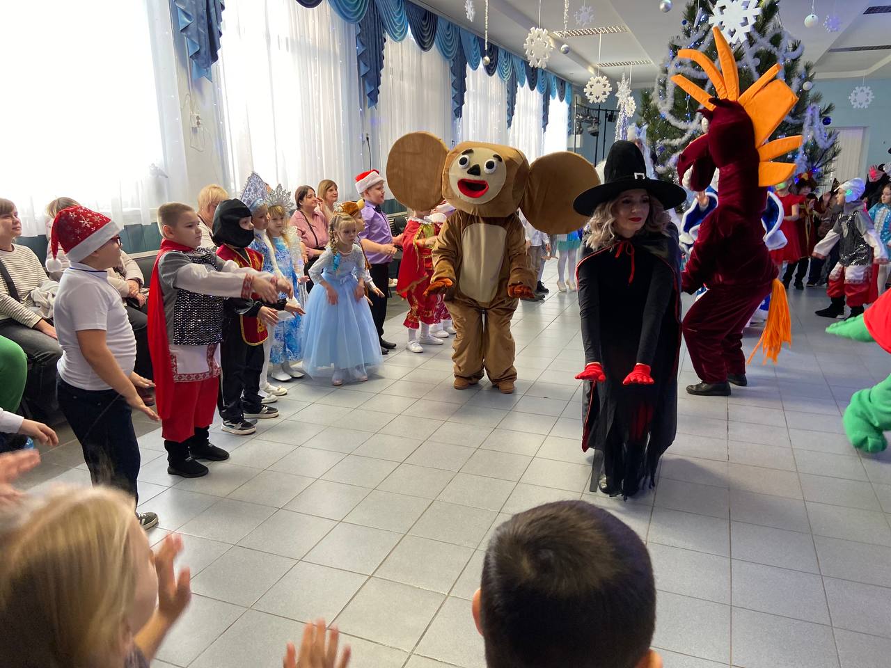 В новогодней программе возле наряженной елки ребят ждали разнообразные песни, танцы, хороводы и игры.
