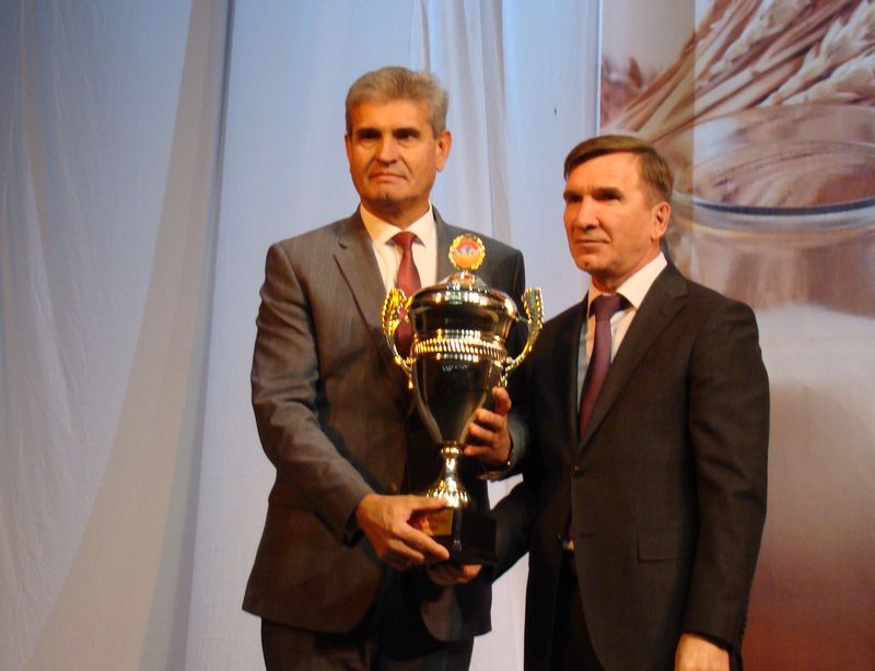 Победный кубок за достигнутые результаты первый заместитель губернатора Ростовской области И.А.Гуськов торжественно вручил главе администрации Константиновского района В.Е.Калмыкову.