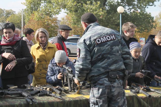 День Главного управления МВД России по Ростовской области в Константиновском районе не ограничивался только встречами с населением и личным составом ОМВД. На площади около районного Дома культуры учащимся и студентам, взрослым и детям были продемонстрированы образцы специальной техники, экипировки, вооружения ОМОНа, состоящих на вооружении подразделений полиции донского региона.