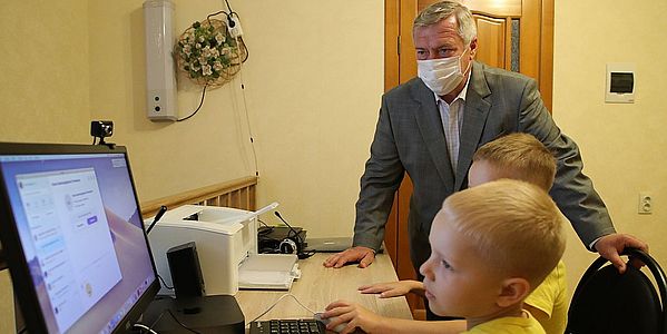 В преддверии нового учебного года губернатор Ростовской области В.Ю.Голубев побывал в гостях у семьи Бочкаревых, чей сын Ваня является учеником 2 класса Центра дистанционного образования детей-инвалидов Ростовской школы-интерната №28.