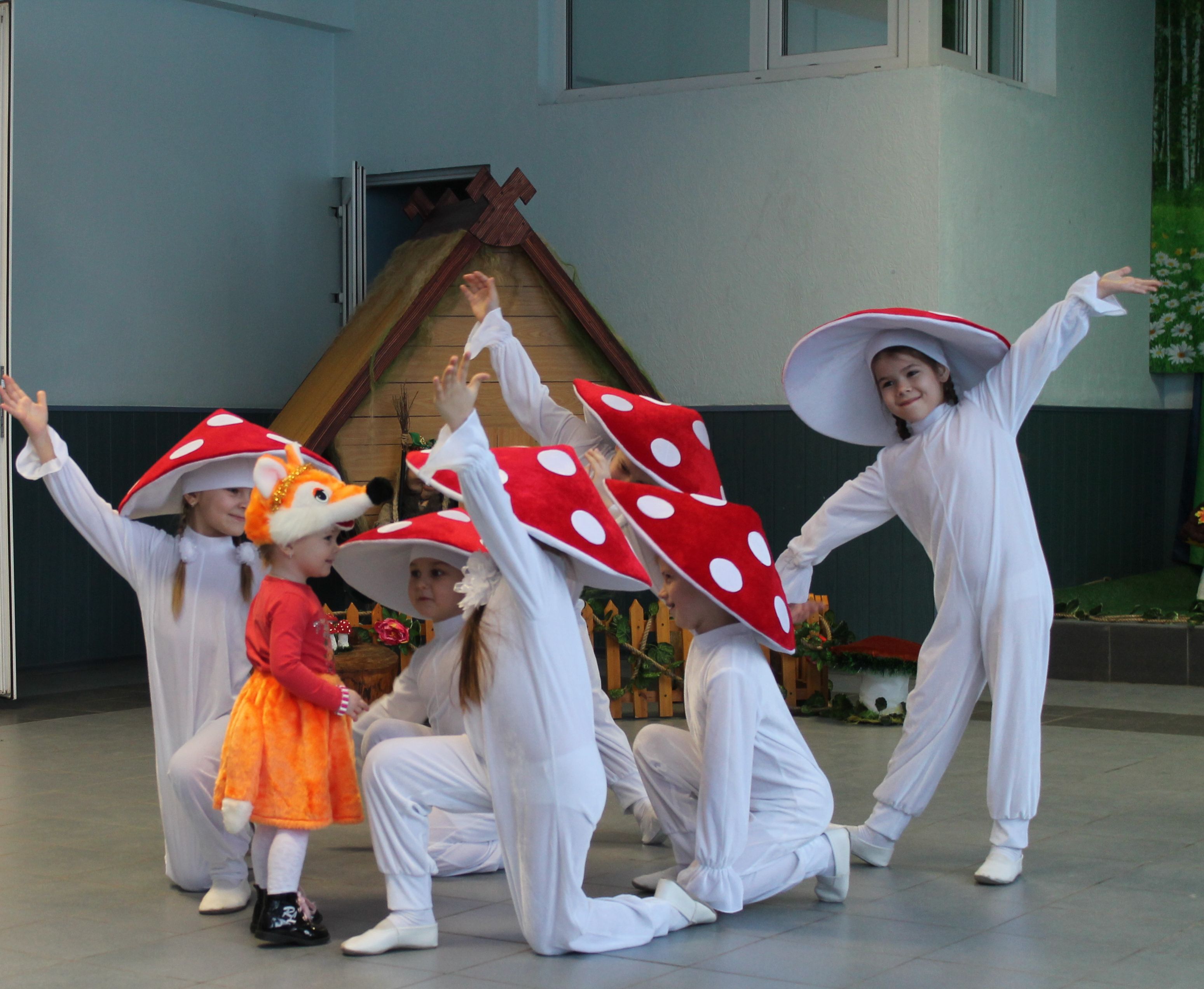 В сказочно оформленный зал на театрализованное мероприятие дети пришли в костюмах лесных жителей вместе с родителями, а в роли ведущей выступил сказочный персонаж Кикимора, кото- рый собрал на лесной опушке всех пришедших на сказку и закружил в веселом хороводе.