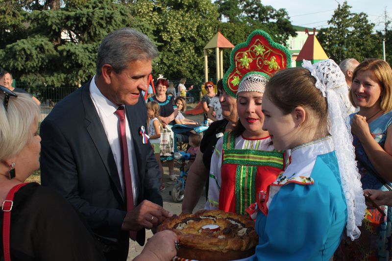 Торжественную часть праздника, состоявшуюся возле ДК «Мир», открыл глава администрации Константиновского района В.Е.Калмыков.