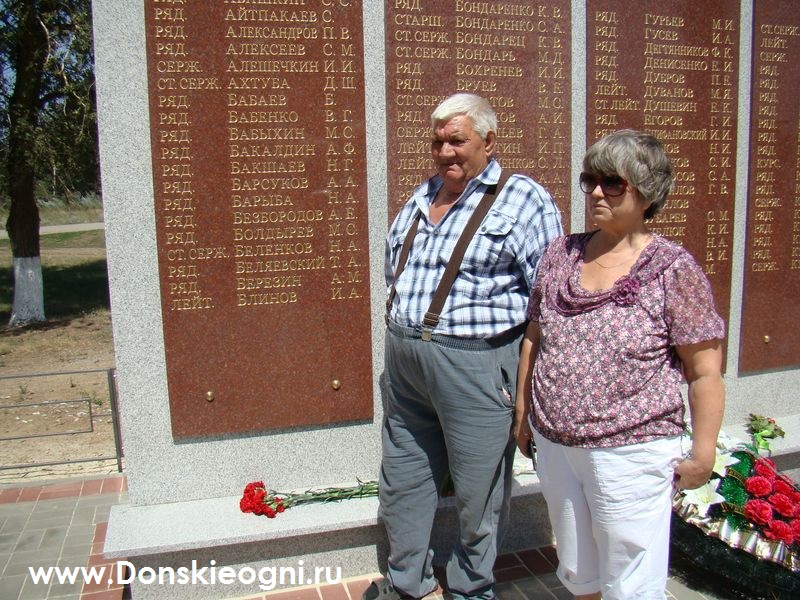 По традиции при открытии памятника была перерезана красная ленточка. Это почетное право было предоставлено Виктору Ивановичу Блинову, который со всей семьей приехал специально на это торжественное мероприятие из Волгограда. В 1943 году его отец Иван Александрович Блинов, командир танковой роты, участвовал в боях за освобождение Константиновского района от немецко-фашист-ских захватчиков и здесь геройски погиб. В феврале 1943 года он был посмертно награжден орденом Отечественной войны II-й степени. Вместе с другими воинами его прах покоится в братской могиле в хуторе Лисичкине.
