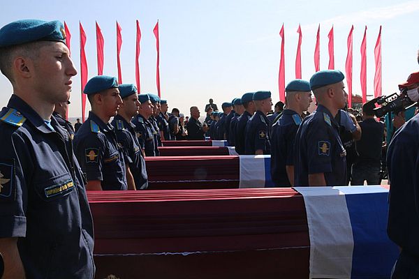 Со всеми воинскими почестями, под оружейный залп и звуки военного оркестра земле предали останки 54 погибших солдат.