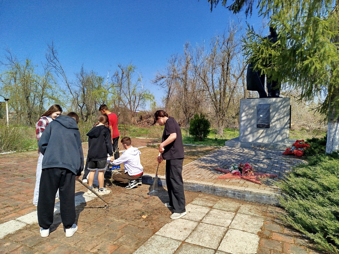 Учащиеся и преподаватели провели уборку братской могилы, расположенной в парке станицы Богоявленской. Старшеклассники, ученики 10 и 11 классов, организовали субботник по облагораживанию еще одного памятного места в станице.