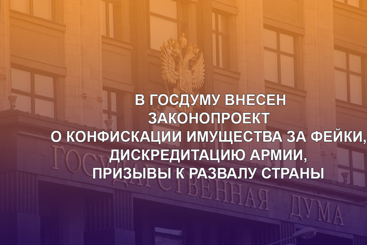 Фейки о Вооруженных силах, дискредитация армия, призывы к развалу страны — эти и другие преступления против страны будут основанием для конфискации имущества.