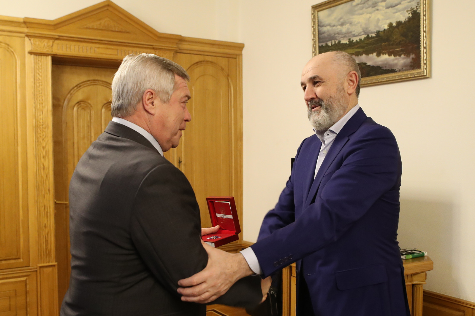 Константиновск. ДОНСКИЕ ОГНИ. Об этом сообщила пресс-служба губернатора Дона на сайте Правительства Ростовской области. Среди отмеченных губернатором и председатель ростовского областного отделения Русского географического общества Али Узденов. 17 января глава региона Василий Голубев вручил ему орден Атамана Платова.