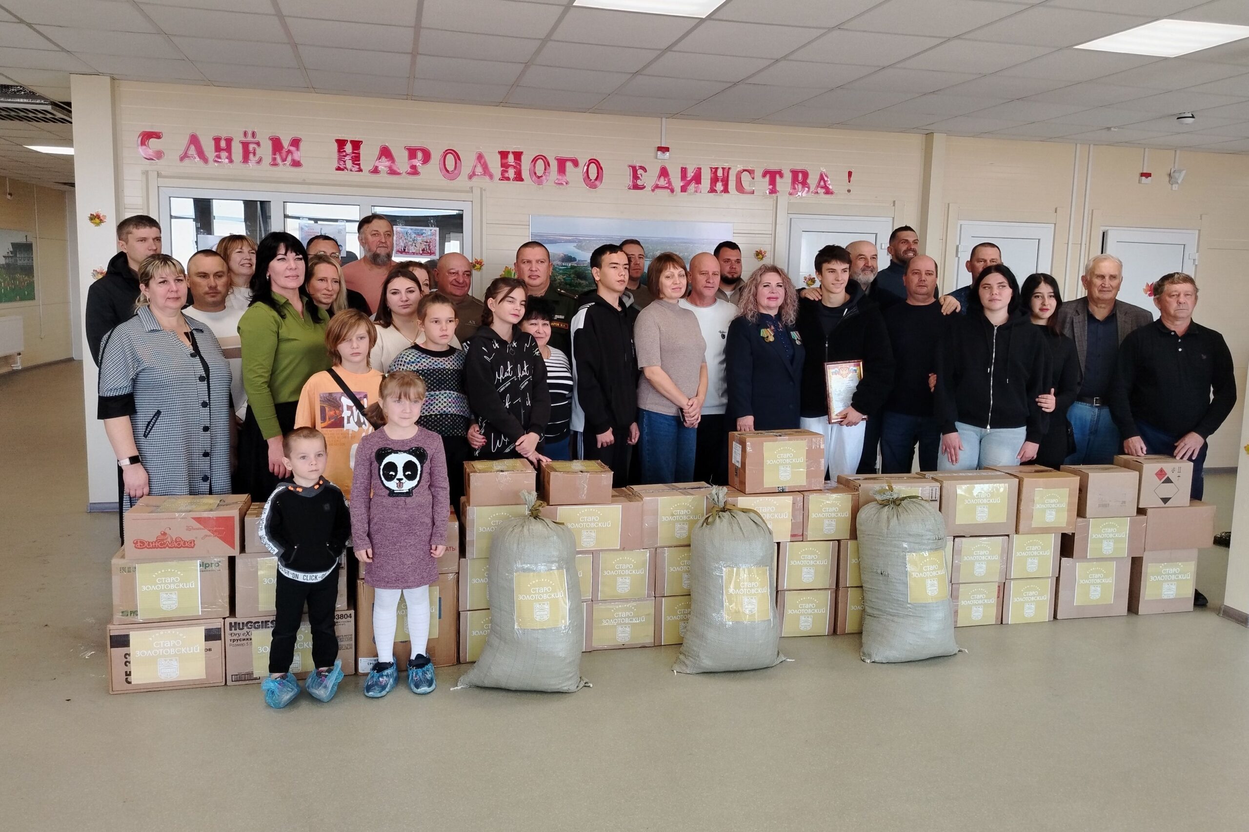 В День народного единства сотрудники ТОС «Старозолотовский» и жители хутора передали гуманитарную помощь российским солдатам, участвующим в СВО.