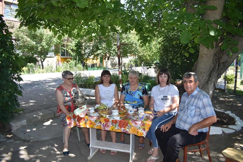 Уютный дворик дома № 223 весь утопает в цветах. Под большим раскидистым ореховым деревом дружные соседи собрались вместе за