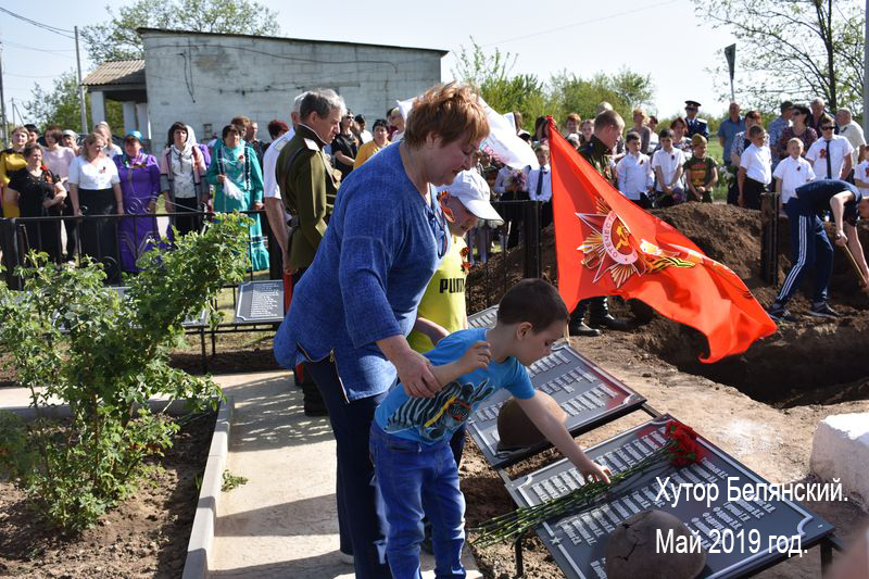 В этот же день церемония перезахоронения останков 19 бойцов 33-й Гвардейской стрелковой дивизии, героически погибших за освобождение хутора Каргальско-Белянского, прошла в хуторе Белянском.