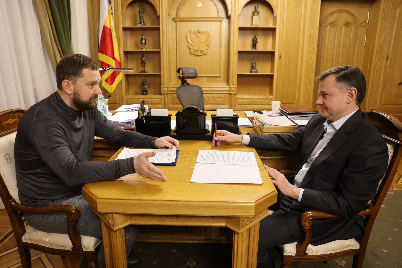 На встрече Врио губернатора Ростовской области Юрия Слюсаря с руководителем Федерального агентства по делам национальностей России Игорем Бариновым были рассмотрены важные аспекты реализации государственной национальной политики и обеспечения этноконфессионального мира и согласия на территории донского региона.