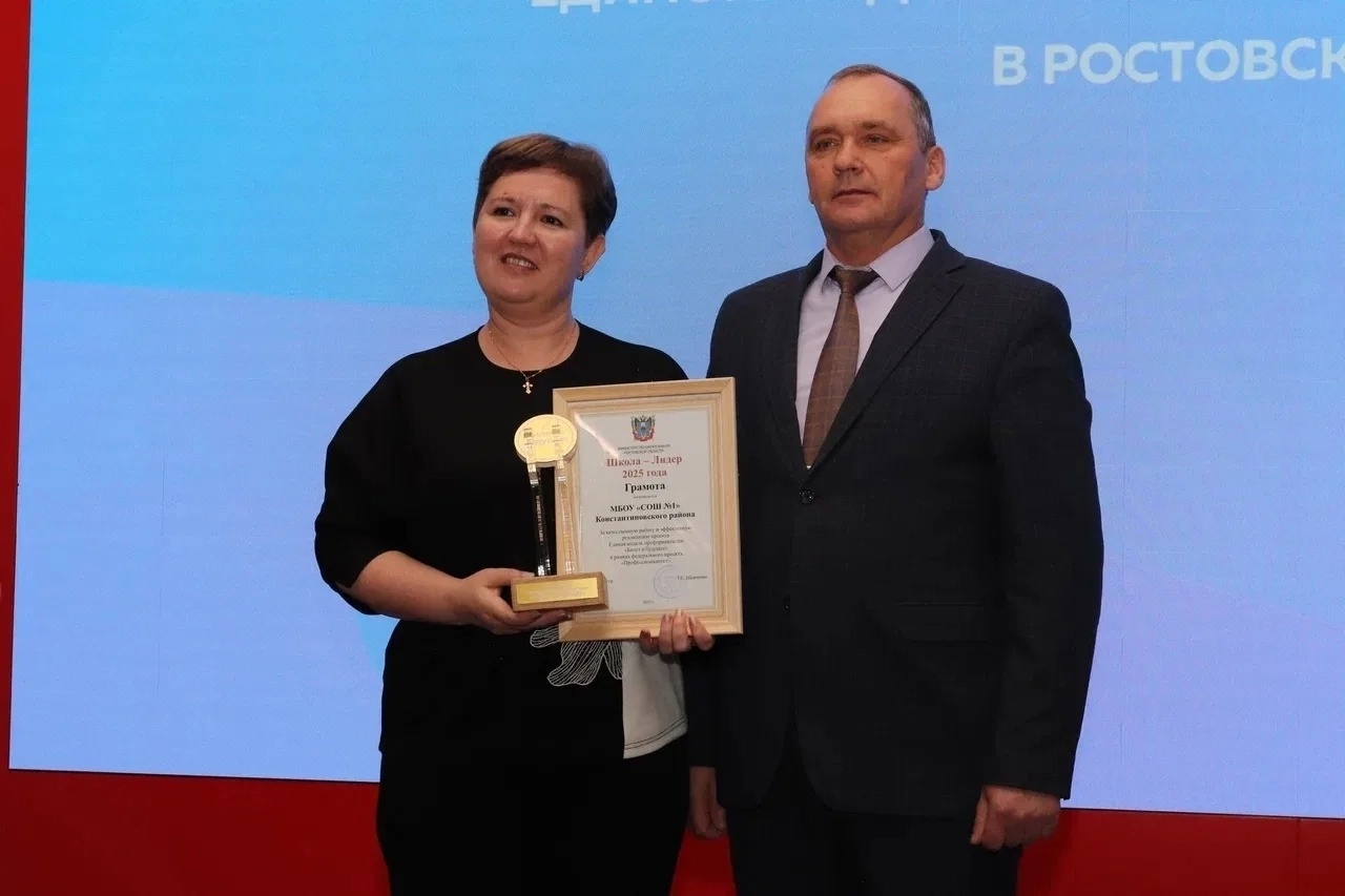 За эффективную реализацию профориентационных проектов Константиновская СОШ №1 была награждена грамотой Министерства общего и профессионального образования Ростовской области и получила статуэтку «Лидер проекта «Единая модель профориентации «Билет в будущее»». Школа вошла в число 43 образовательных организаций-победителей проекта.