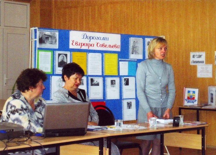 Они прошли 9-10 октября в преддверии Дня города, и организаторами их были библиограф Константинов-ской районной библиотеки В.П. Граф, преподаватель общественных дисциплин Константиновского педколлед- жа Е.Ф. Сухинина и директор базовой школы Л.Н.Толма-чева. Цель чтений опреде-лили так — популяризация крае-ведческого материала.