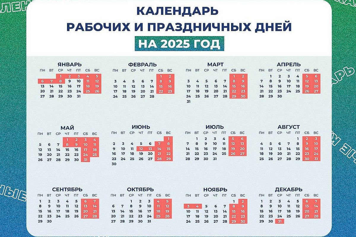 Минтруд разработал проект о выходных в 2025 году