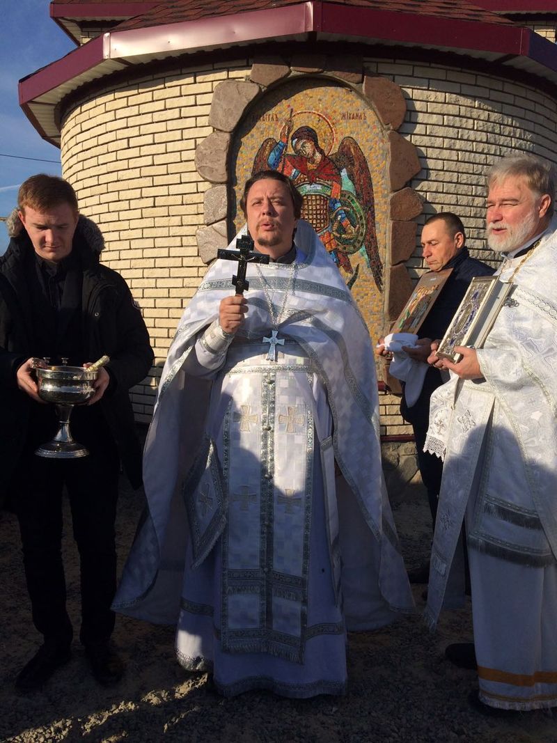 В строящемся храме Архистратига Божия Михаила в хуторе Михайловском прошла первая Божественная Литургия.
