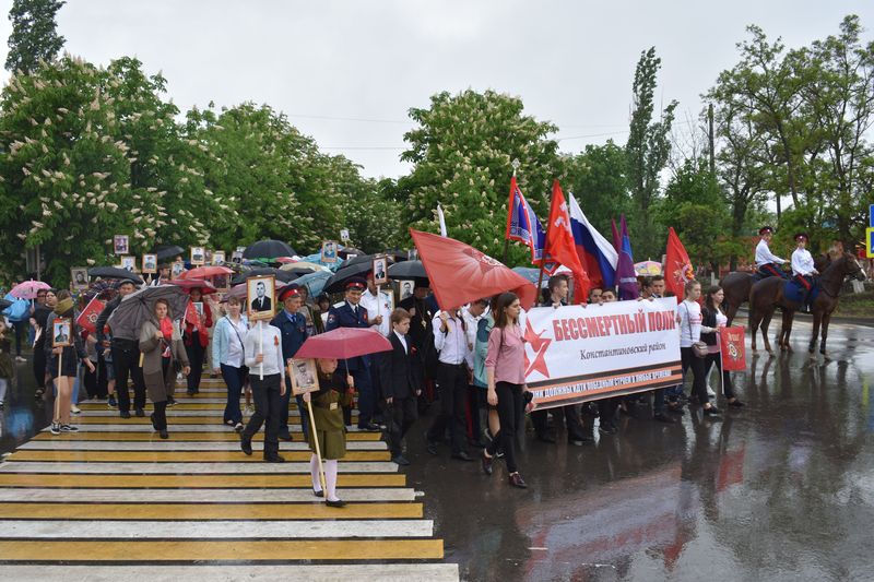 с торжественного шествия Бессмертного полка. Несмотря на дождливую погоду, сотни людей от мала до велика вышли на улицу с портретами родных, воевавших на фронтах Великой Отечественной войны и ковавших Победу в тылу. Сплоченной колонной шли по аллее до Мемориальной пло-щади потомки фронтовиков и тружеников тыла с их фотографиями. Это была поистине всеобщая патриотическая акция народной памяти, которая из года в год набирает беспрецедентную популярность. В нашем городе акция «Бессмертный полк» проходит пятый год подряд, и по приблизительным подсчетам ее участниками в этот раз стали более 1300 человек.