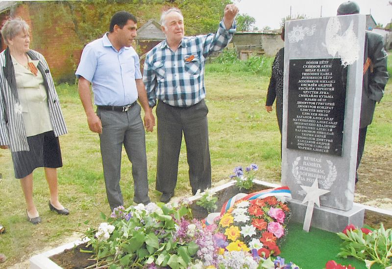 Услышанное тронуло душу Ануш Джониковны и после концерта она поинтересовалась у культработников, где у них в хуторе находится памятник погибшим землякам. Но такового мемориального сооружения, к сожалению, в хуторе нет. И то, что местные жители не могут отдать дань памяти погибшим в Великой Отечественной войне землякам, ее буквально поразил. Через год Ануш Джониковна изготовила за свой счет и привезла в хутор памятную плиту, на которой были выгравированы имена всех 25 погибших хуторян.
