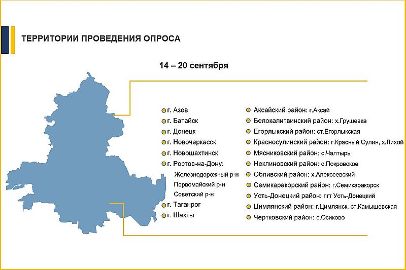 Всего же в Ростовской области в исследовании будут задействованы 34 муниципальных образования и опросить планируется более 3000 человек.