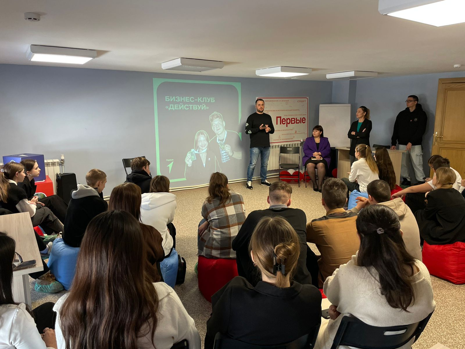 В начале встречи Евгений Сергеевич поделился своей историей успеха, рассказал как он строил свое дело и развивался в этом направлении. В целом мероприятие прошло в формате открытого диалога: молодые люди смогли задать интересующие их вопросы и очень быстро получали ответы на них.