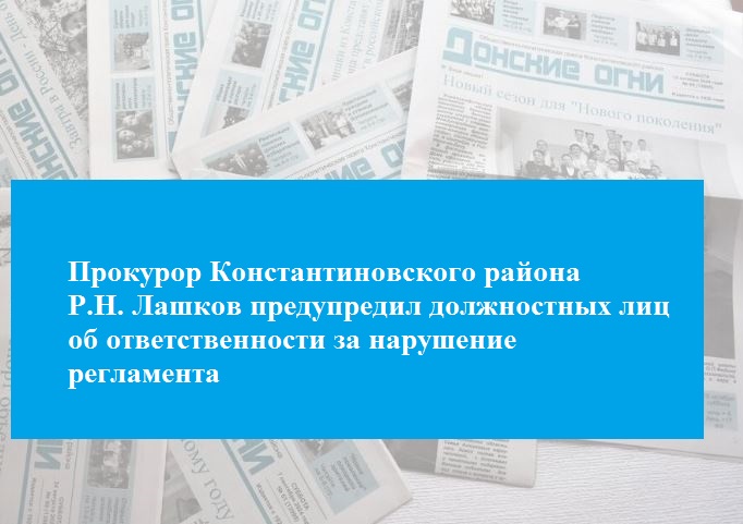 Прокурор Константиновского района Р.Н. Лашков предупредил должностных лиц об ответственности за нарушение регламента