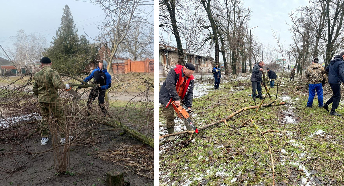 Участие в этом, кроме службы ЖКХ, казачества, добровольцев принимают и учебные заведения города. Студенты и преподаватели педагогического колледжа убирали прилегающую территорию.