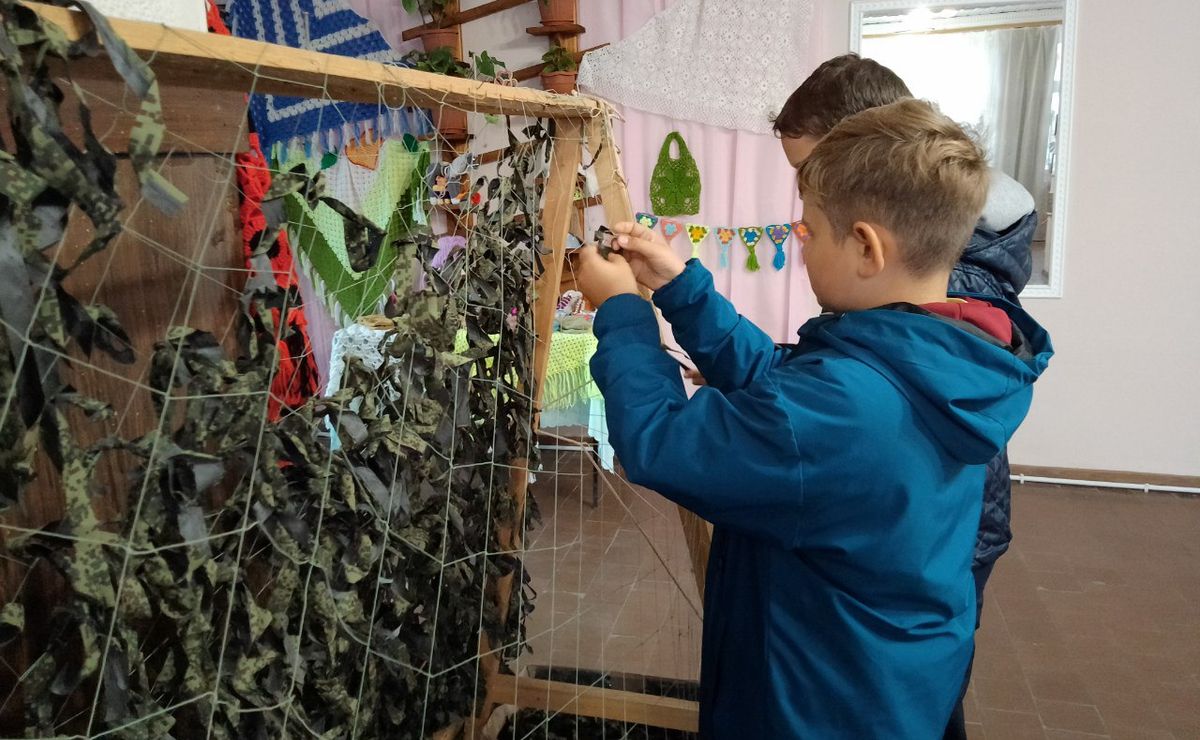В юбилейный для станицы день в местном доме культуры звучали песни, а в фойе был организован мастер — класс на котором юные николаевцы показывали умение плести маскировочные сети для наших солдат в зоне проведения СВО.