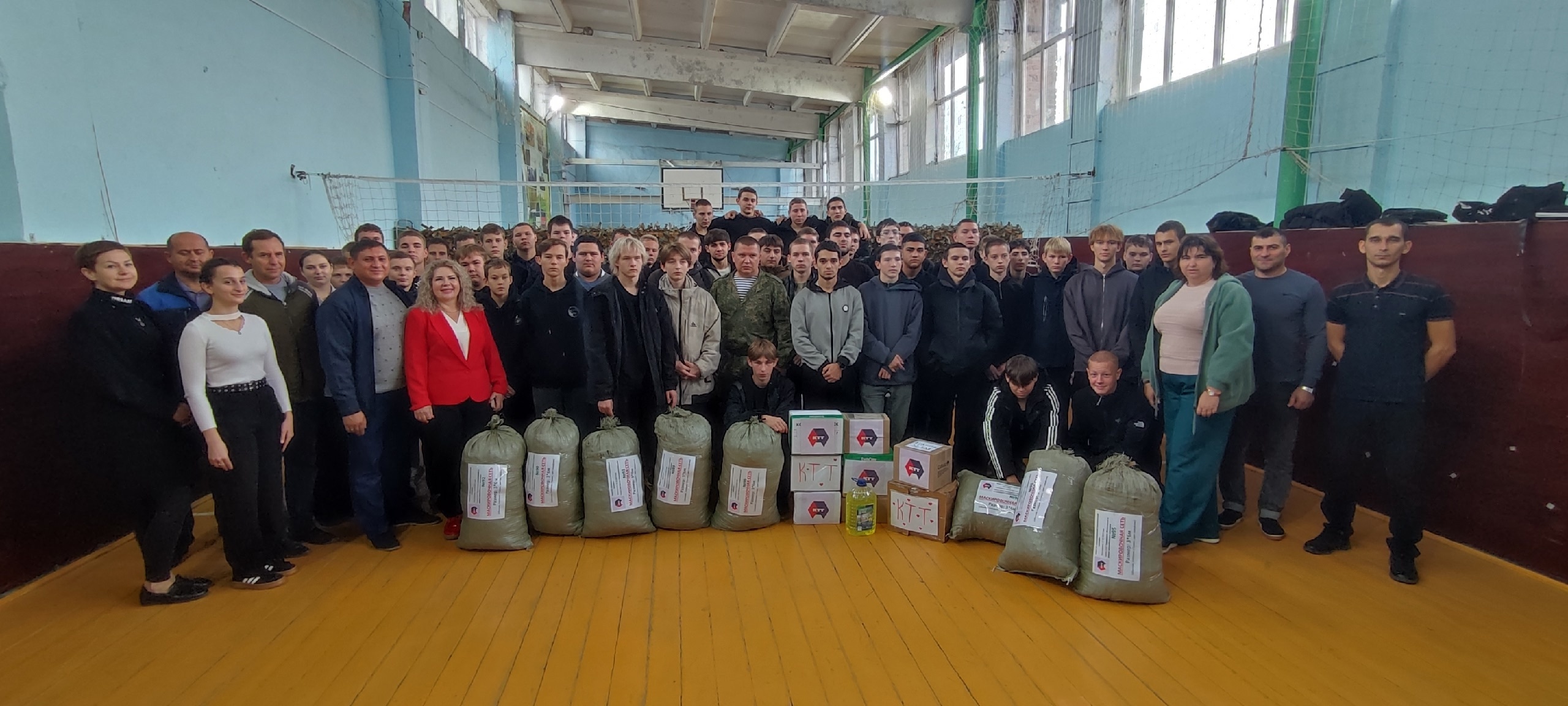 Елена Петровна Носульчак подробно рассказала о работе своей группы и потребностях военнослужащих, акцентировав внимание на роли молодежи в оказании гуманитарной помощи. Студенты КТТ передали волонтерской группе 10 маскировочных сетей, сделанных своими руками, и собранную гуманитарную помощь для дальнейшей отправки бойцам, участвующим в СВО.