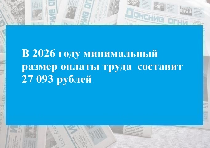В 2026 году минимальный размер оплаты труда составит 27 093 рублей