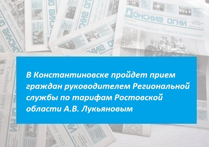 В Константиновске пройдет прием граждан руководителем Региональной службы по тарифам Ростовской области А.В. Лукьяновым
