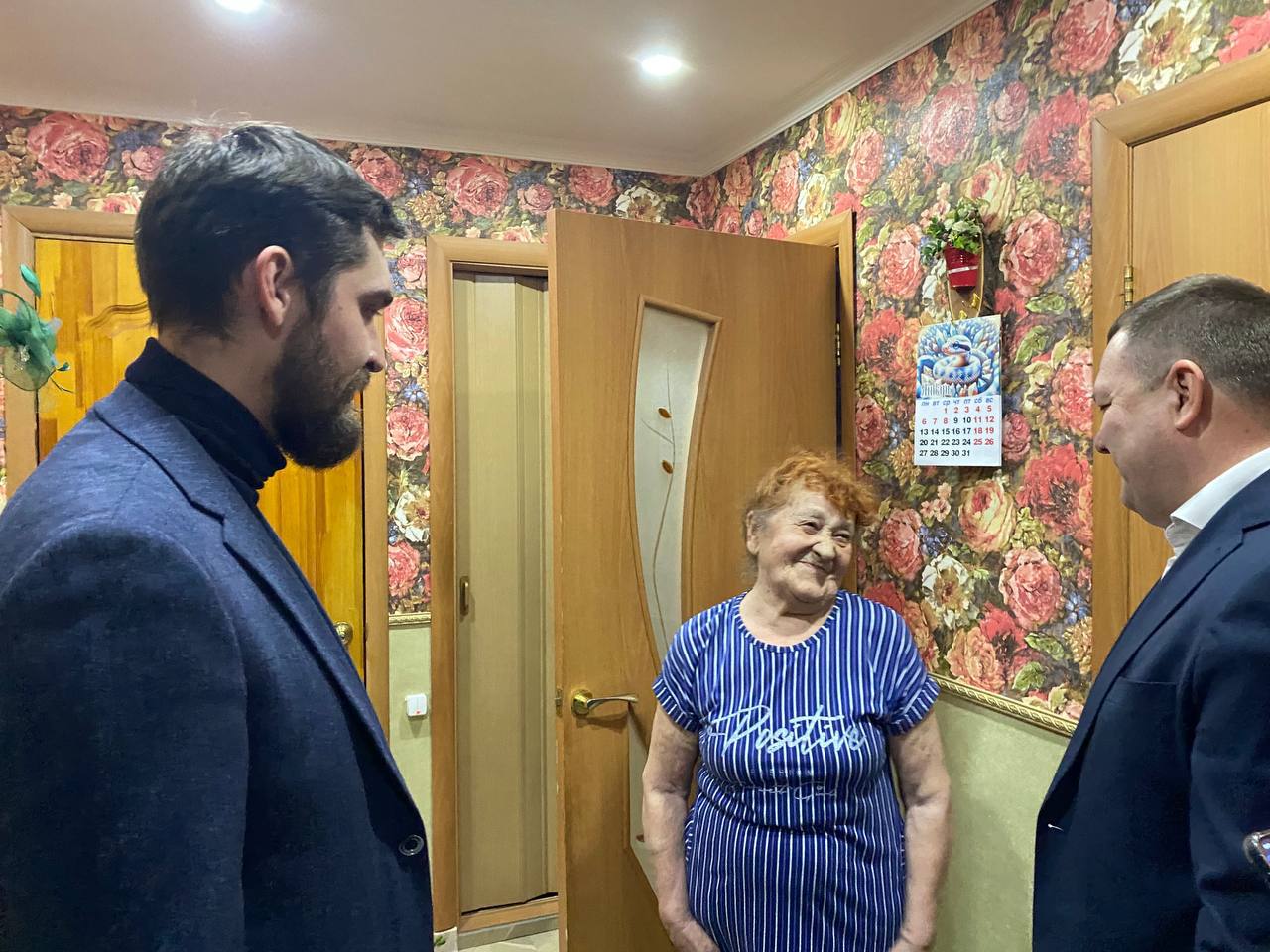 В День освобождения Ленинграда от фашистской блокады депутат Законодательного Собрания Ростовской области Николай Ромашенко и глава администрации района Виталий Дьячкин побывали в гостях у участницы блокады, жительницы Константиновска В. И. Столбовской.