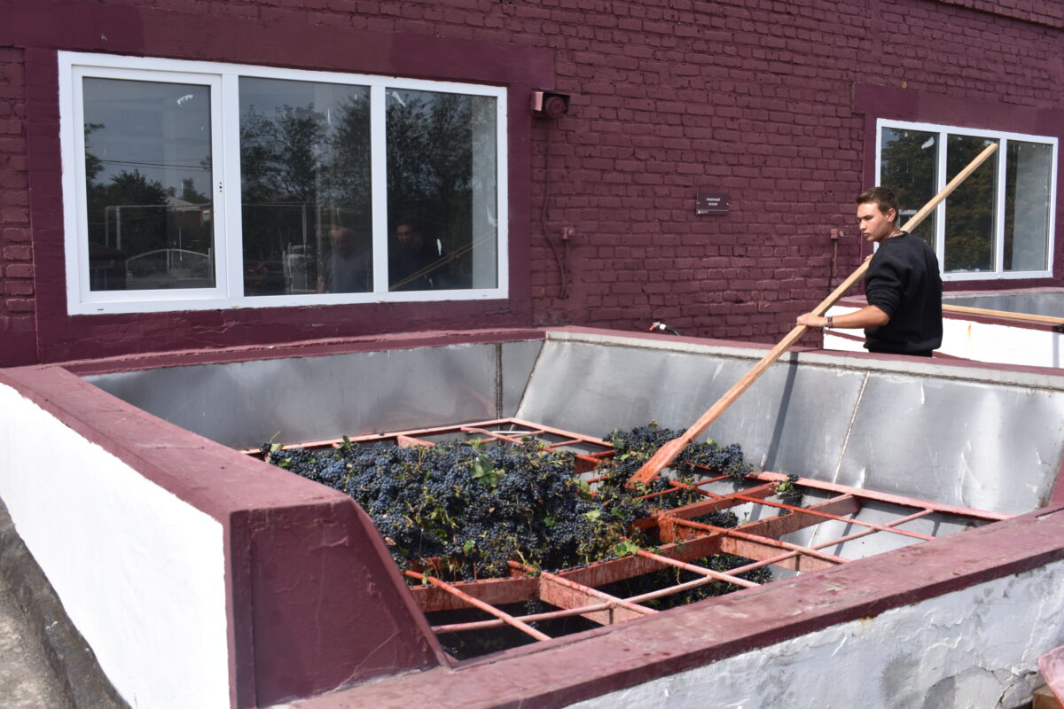 Для приготовления красных вин, брожение сока производится вместе с мезгой, которая придает будущему вину цвет и дополнительный аромат. В день в винцехе обрабатывается от 20 до 50 тонн винограда.