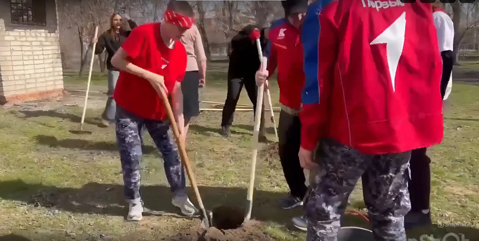 Работа закипела с первых минут. Студенты быстро и слаженно распределили обязанности: кто-то копал ямы, кто-то носил воду, кто-то рыхлил землю и бережно высаживал саженцы сливы и рябины. Такой подход позволил превратить посадку в настоящий праздник труда и единства.