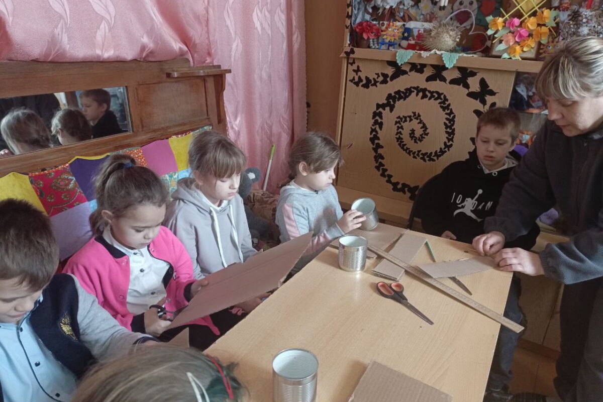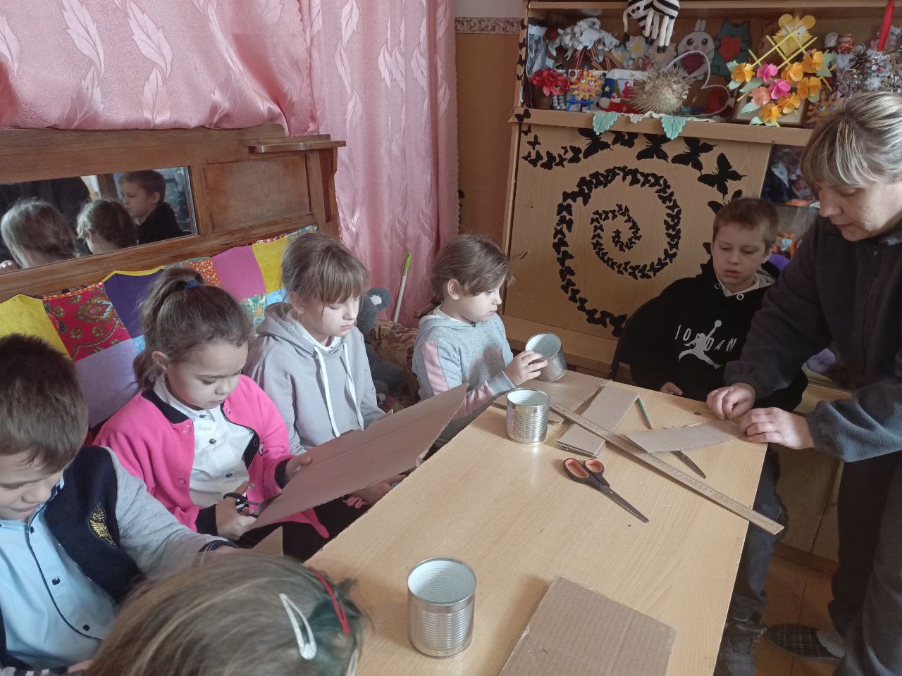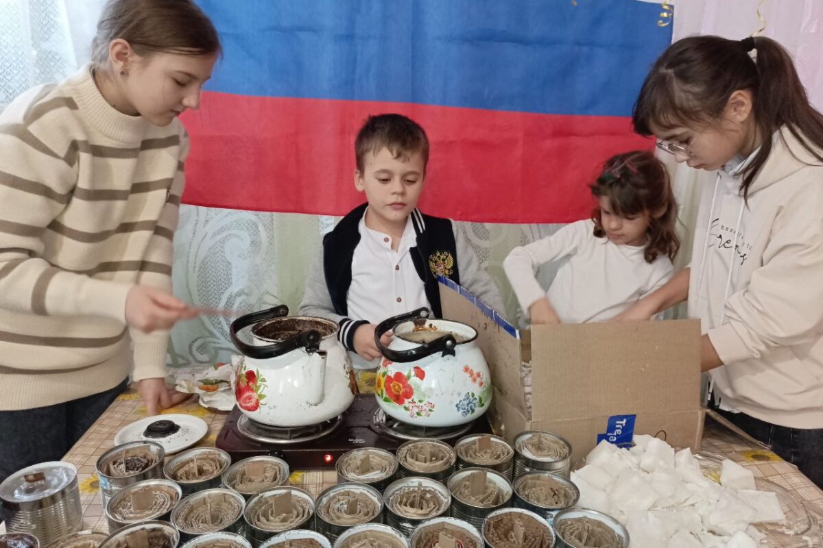 Работники СДК Елена Петровна Назаровна и Наталия Андреевна Назарова вместе с детьми изготовили окопные свечи для участников СВО.