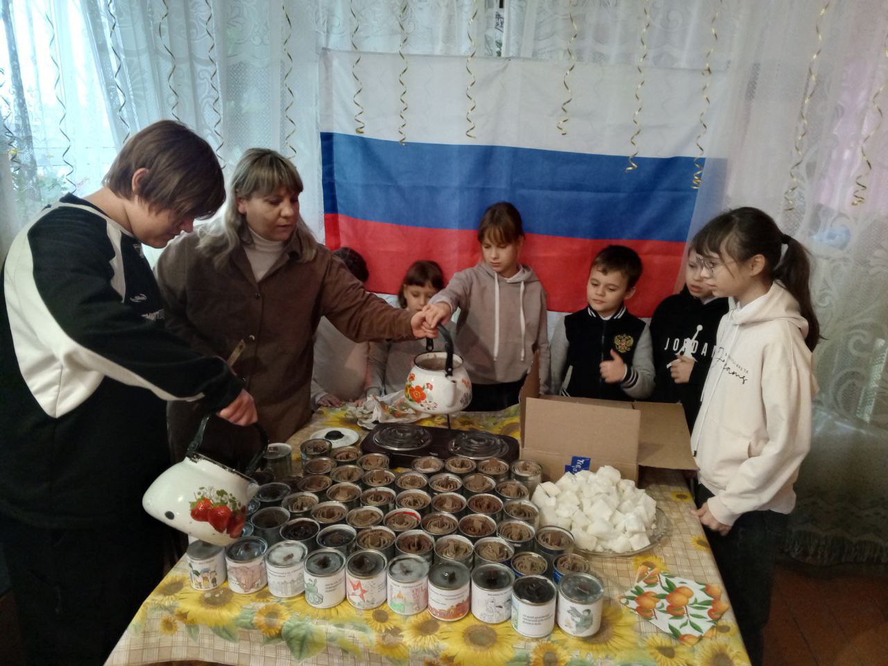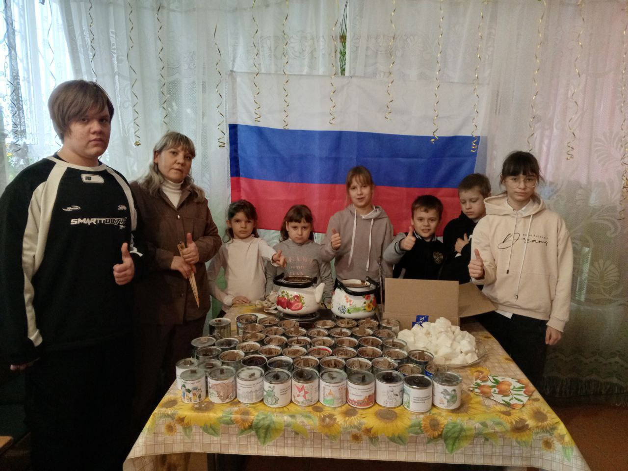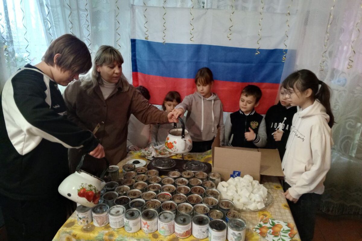 Работники СДК Елена Петровна Назаровна и Наталия Андреевна Назарова вместе с детьми изготовили окопные свечи для участников СВО.
