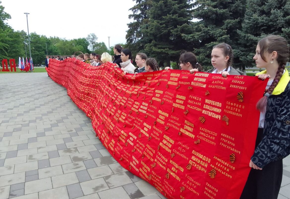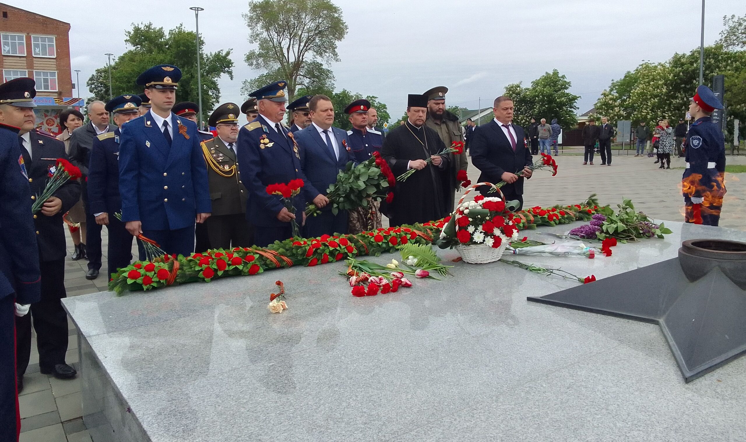 Они принесли цветы к подножию братского захоронения героев. В праздничной колонне глава администрации Константиновского района Виталий Александрович Дьячкин, ветераны Вооруженных сил, внуки и правнуки тех, кто отстоял свободу нашей страны в годы Великой Отечественной войны.