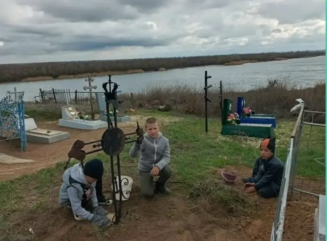 В ходе мероприятия взрослые и дети привели в порядок старинные казачьи могилы на станичном кладбище.