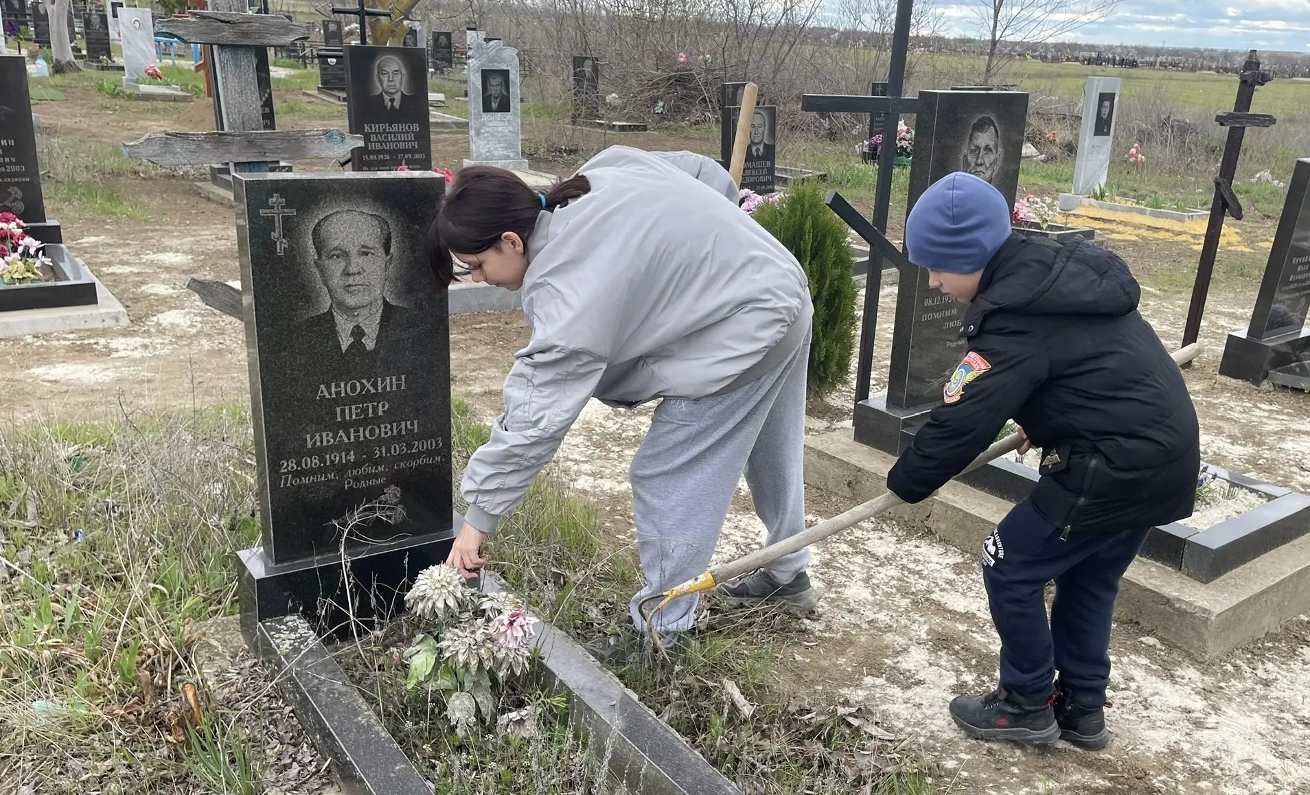 В рамках мероприятия ребята вместе со своими наставниками привели в порядок место захоронения героя Великой Отечественной войны на городском кладбище.