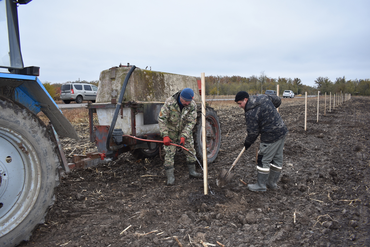 ООО « Кагальник» высадило вдоль дороги на въезде в хутор Упраздно-Кагальницкий 130 лип.