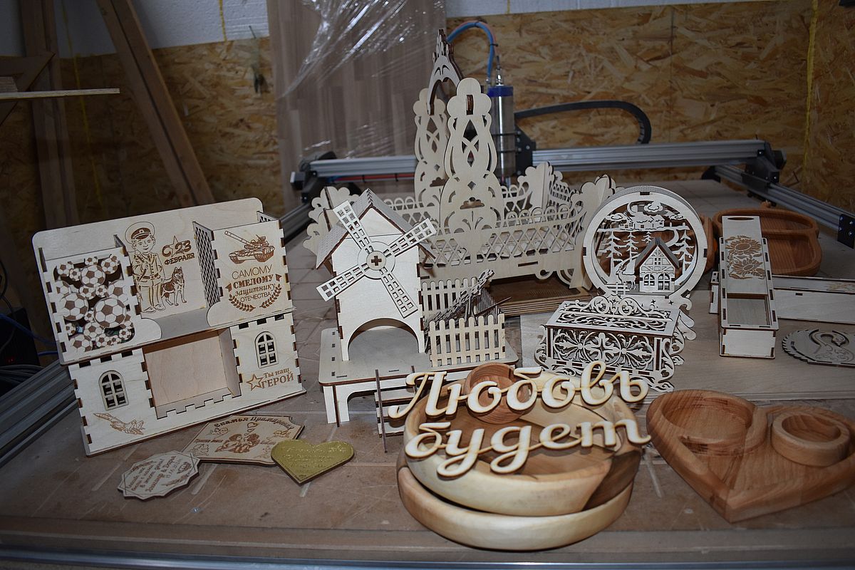 И закипела работа. На полученные по контракту деньги он приобрел необходимое оборудование (лазерный станок, 3D-принтер, аппарат для нанесения рисунка на кружки) и расходные материалы. Во дворе собственного дома сделал мастерскую, в которой удобно заниматься любимым делом.