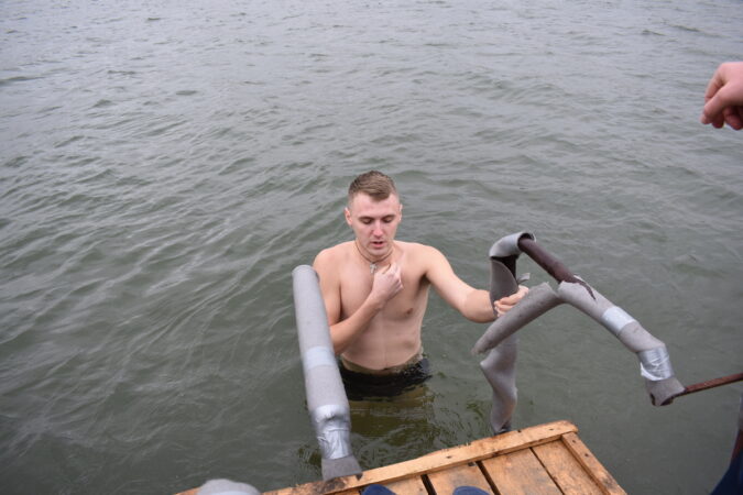 Для комфортного погружения и набирания воды в прибрежной зоне были оборудованы деревянные сходни, а безопасность поклонников экстремального погружения в ледяную купель обеспечивали спасатели Константиновского поисково-спасательного отряда.